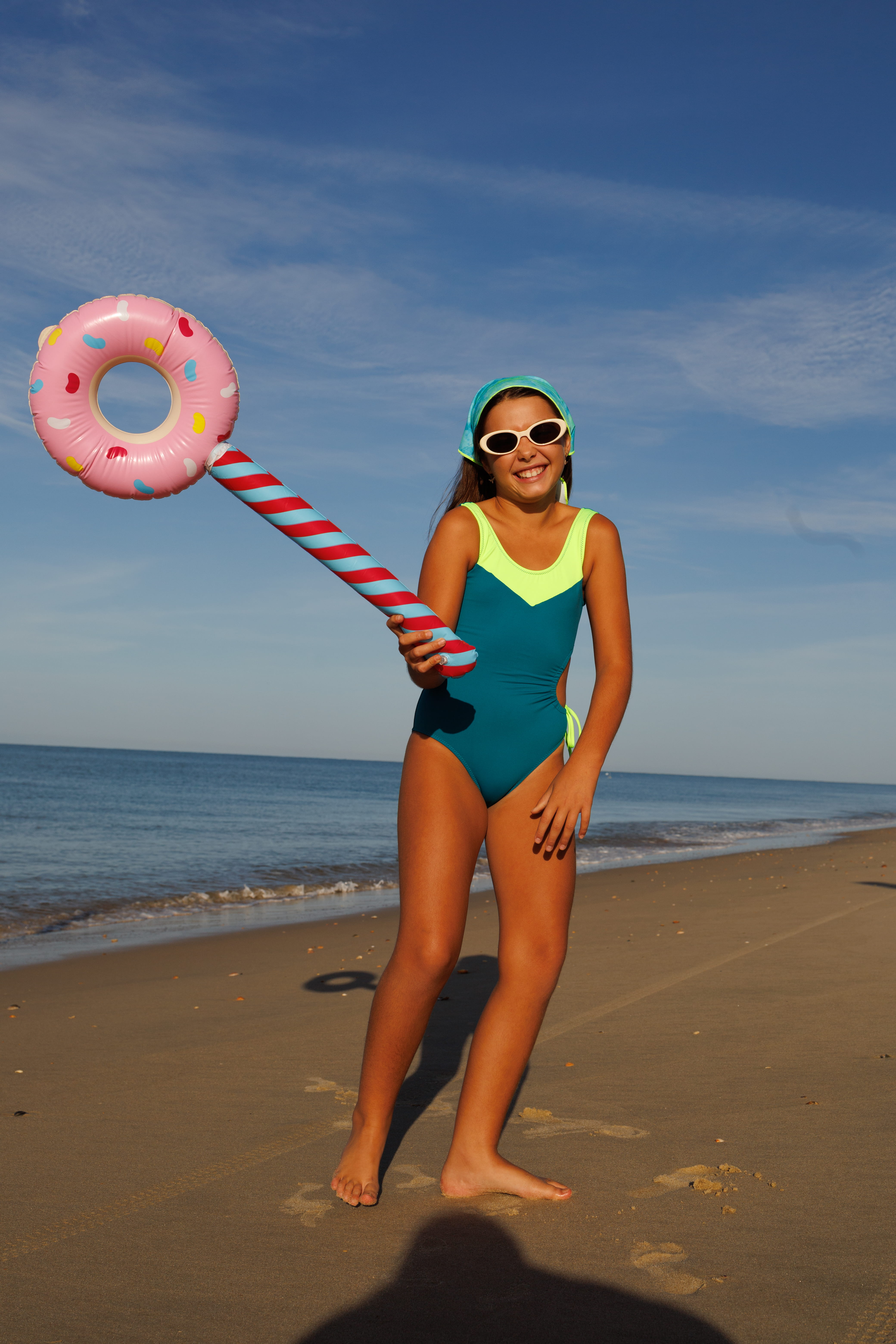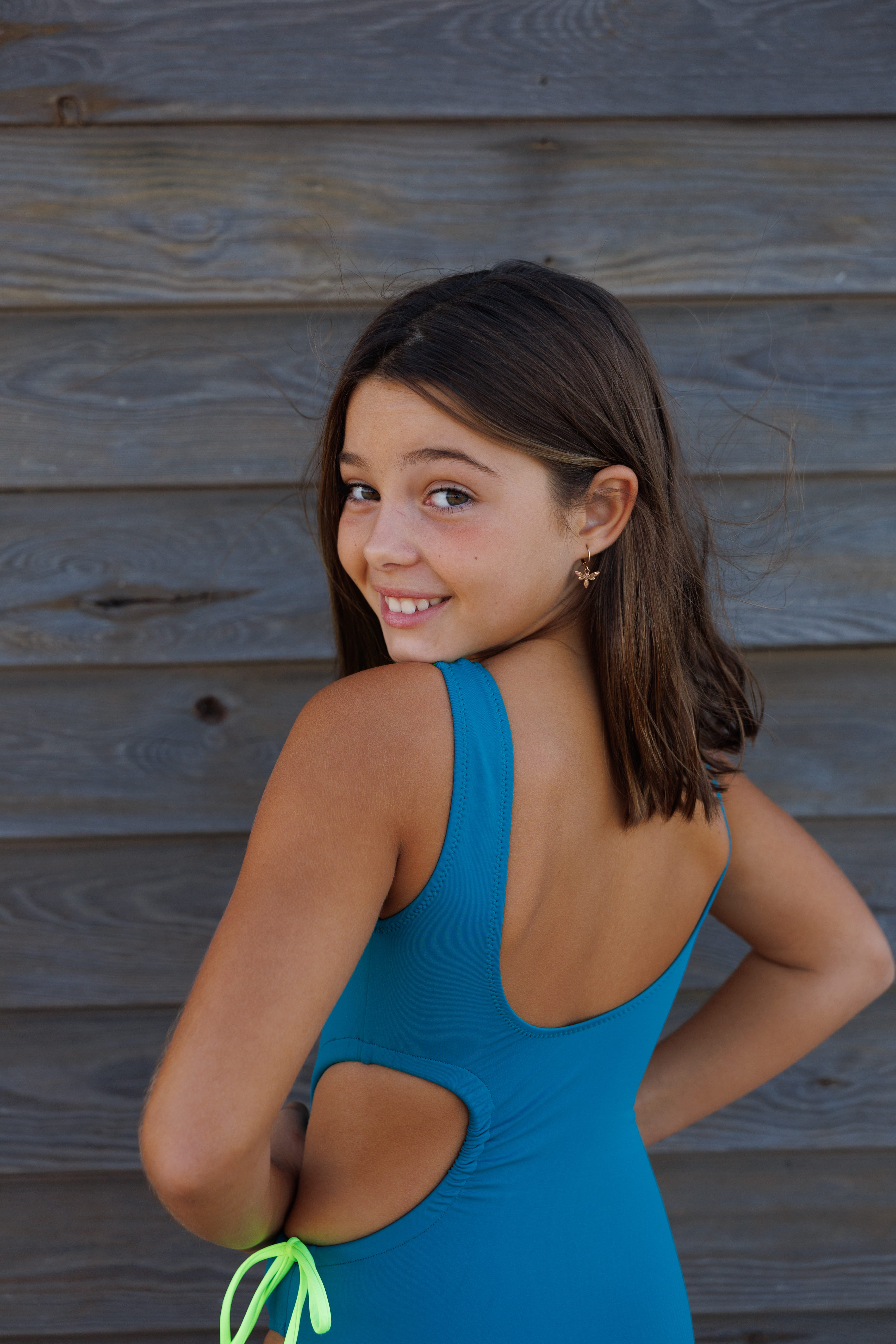 Bañador niña y teen con abertura lateral y detalle de escote bicolor.
